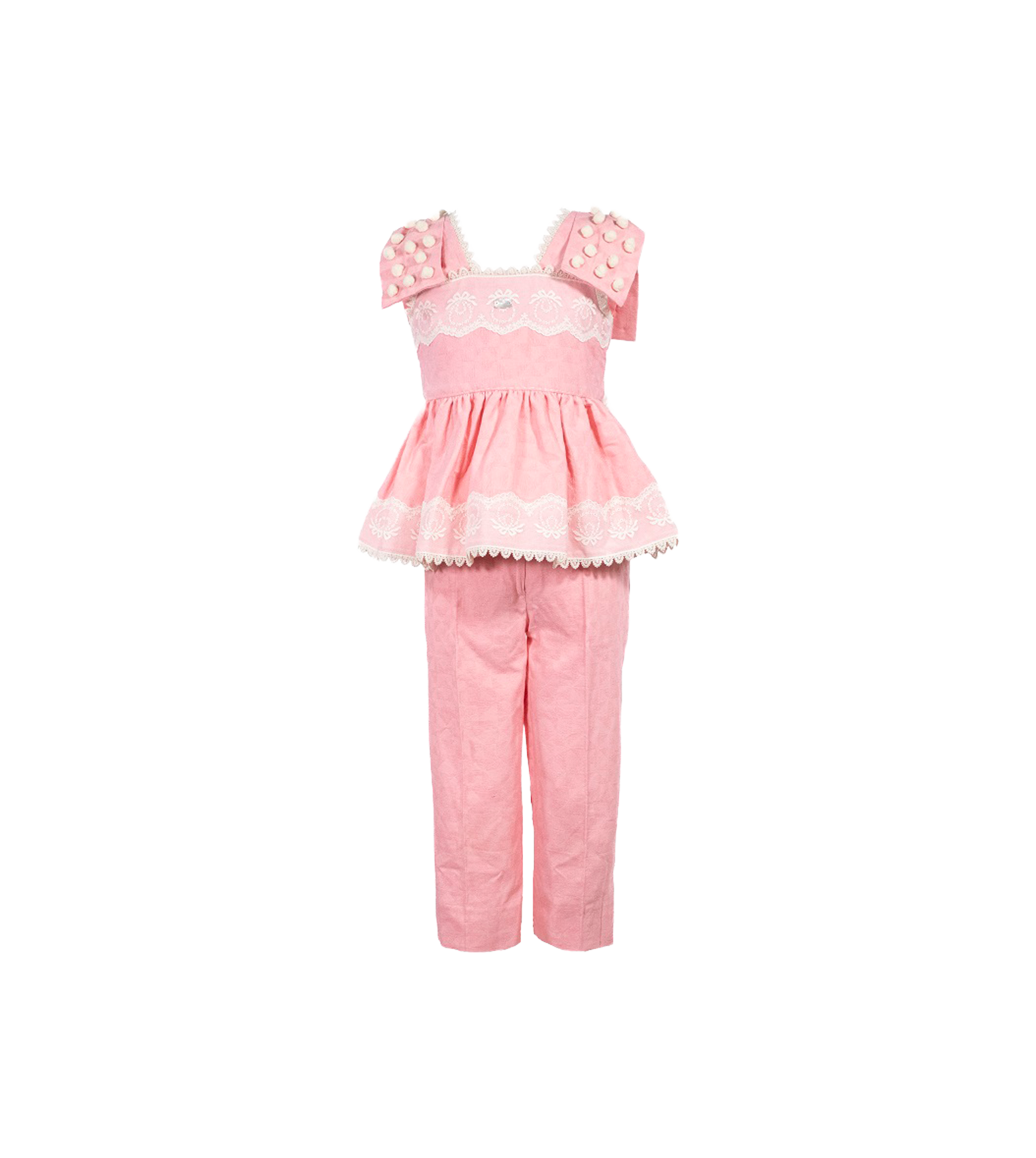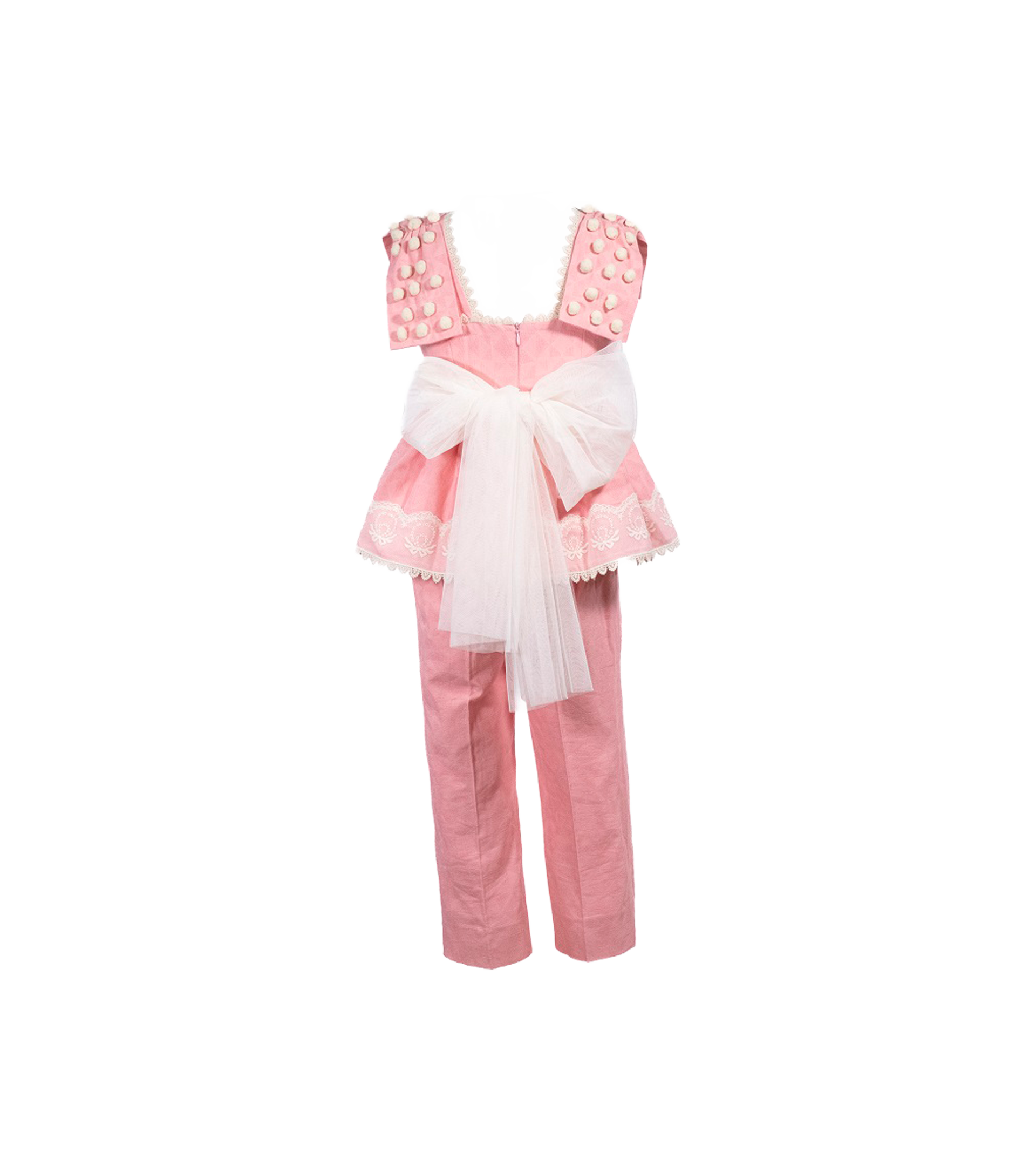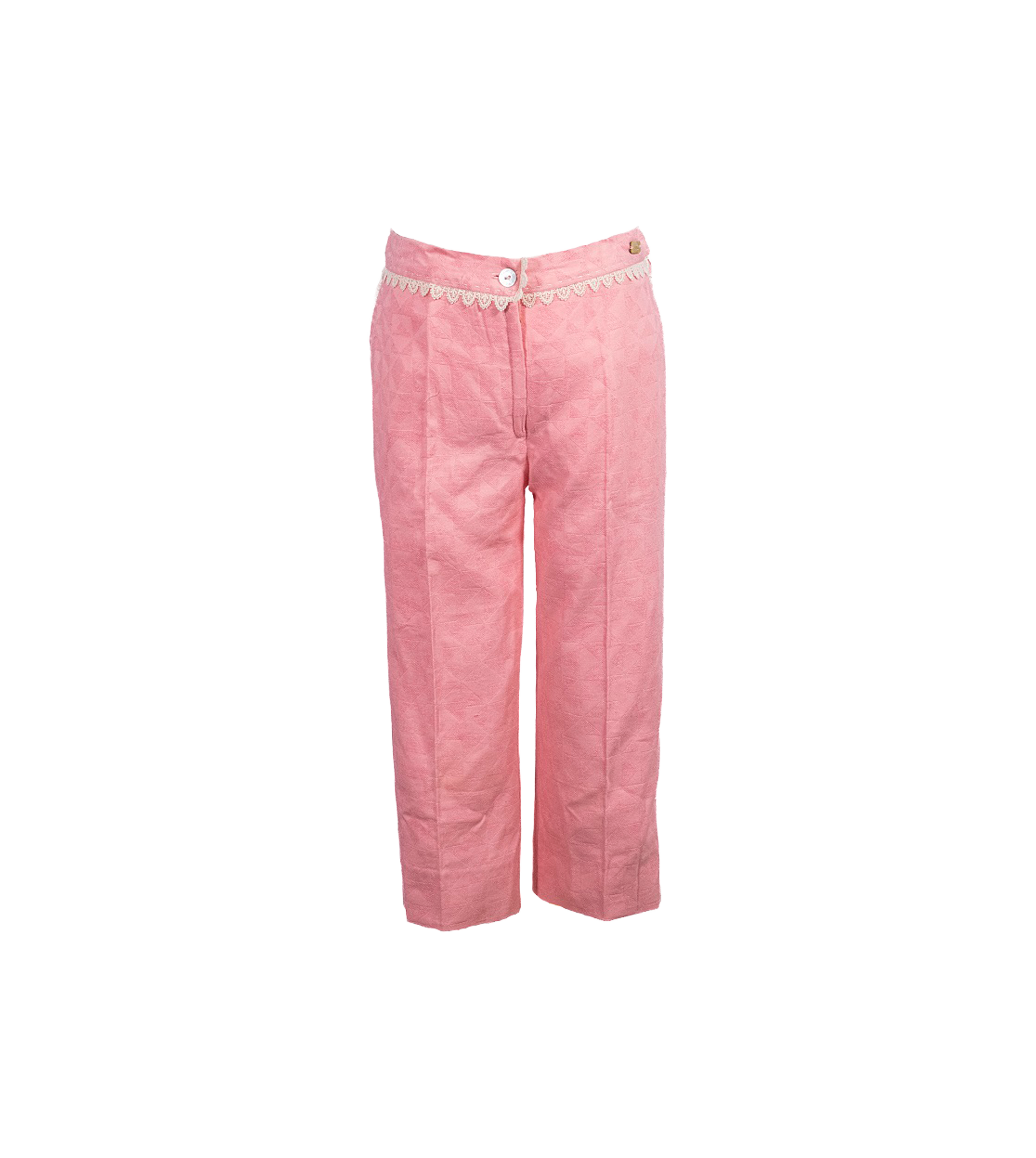 Pantalón pesquero en tejido de jacquard, con bolsillos laterales , apertura delantera y goma ajustable en la cintura.