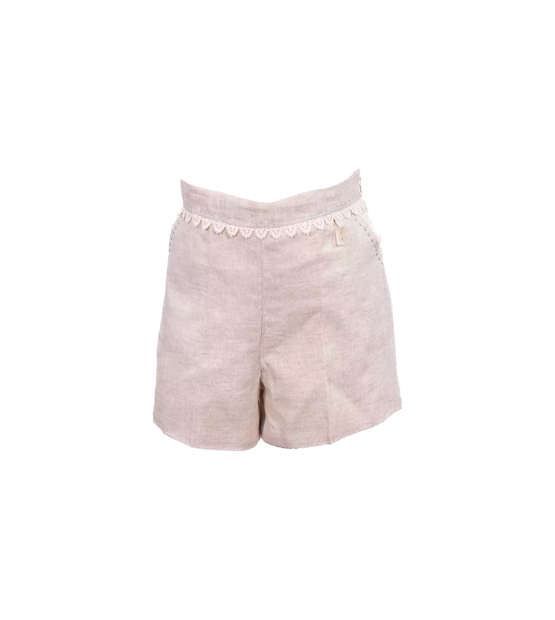 Pantalón triana en tejido de lino 100%, con bolsillos delantero, cremallera lateral y cintura ajustable con goma.